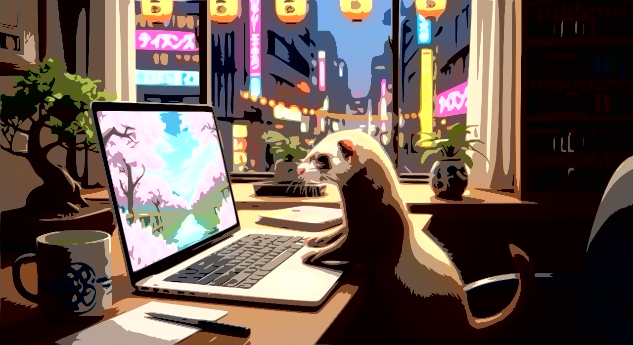 心の安定剤になるフェレットが大好きで、長年フェレットと一緒に、1人と1イタチで暮らしています。