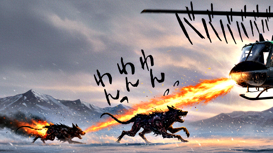 そしてラストでは、犬に同化したエイリアンが逃げ出し、それを撃ち殺そうとヘリで追うシーンで幕を閉じます。